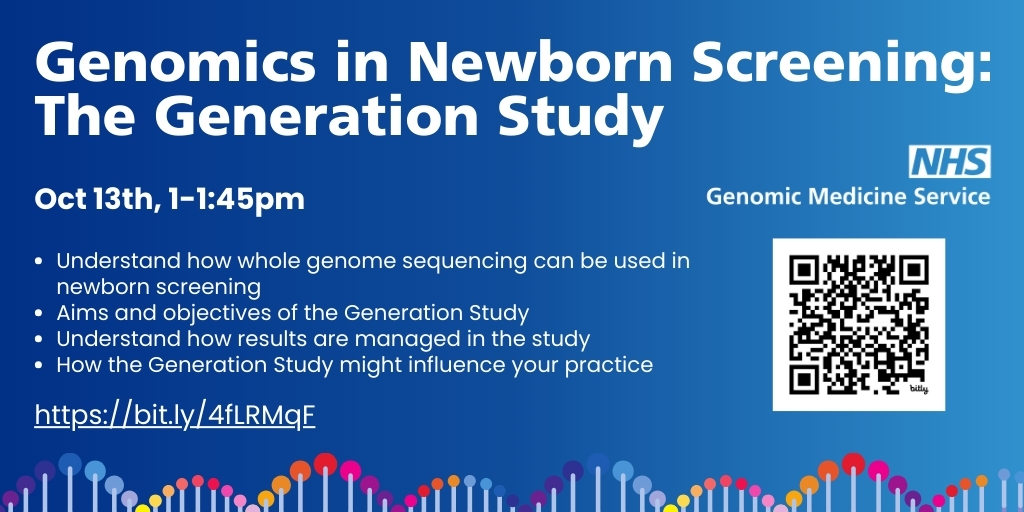 Next up in our series of national Genomics Lunch and Learn webinars is a session on 13 October which will focus on Genomics in Newborn Screening: The Generation Study. Register your free place here.
