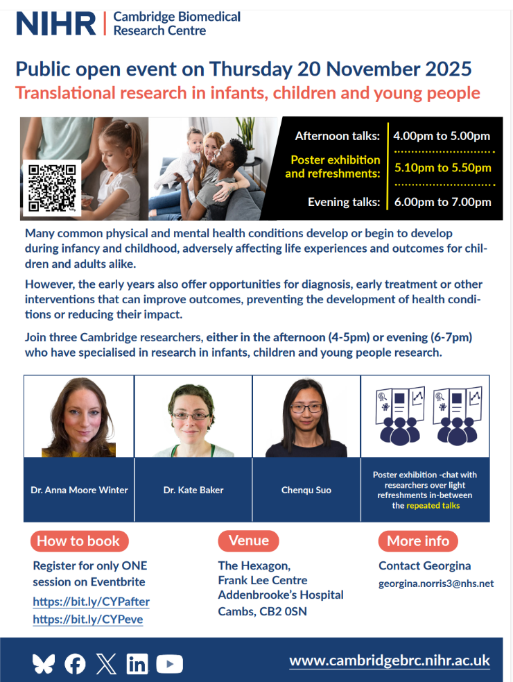 Join three Cambridge researchers who have specialised in research in infants, children and young people to hear how research is changing the way we diagnose and treat health conditions that emerge in the early years, setting the stage for healthier outcomes.
